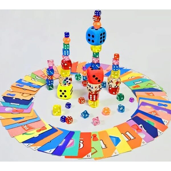 指定された面数のダイス(6面、8面、12面など)や、指定された色のダイスを山から選び、自分のタワーの上に積み上げます。