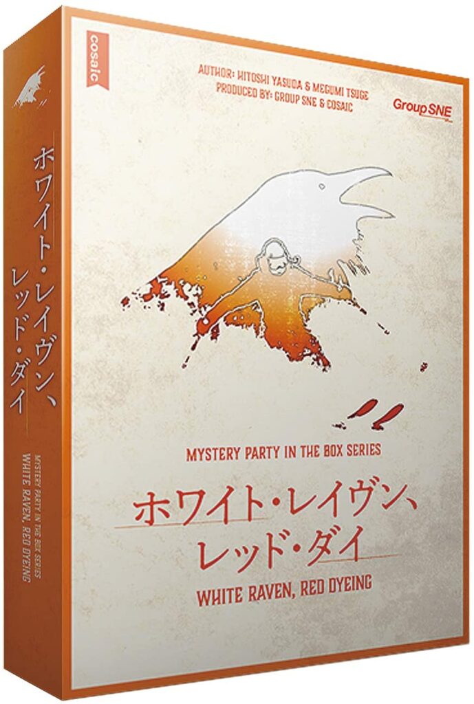 「ホワイト・レイヴン、レッド・ダイ」は、GM(ゲームマスター)無しでプレイできる、大人気パッケージ型マーダーミステリーシリーズの「MYSTERY PARTY IN THE BOX SERIES」の最新作。