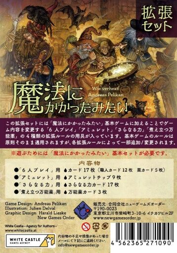「6人プレイ」「アミュレット」「さらなる力」「煮え立つ万能薬」の4種類の拡張ルールが含まれています。